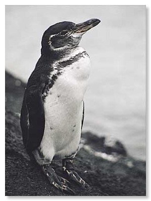 The northernmost of all penguins, Galapagos Penguins breed right on the equator. Populations fluctuate heavily under the influence of El Niño to a degree that the future survival of the species is endangered.